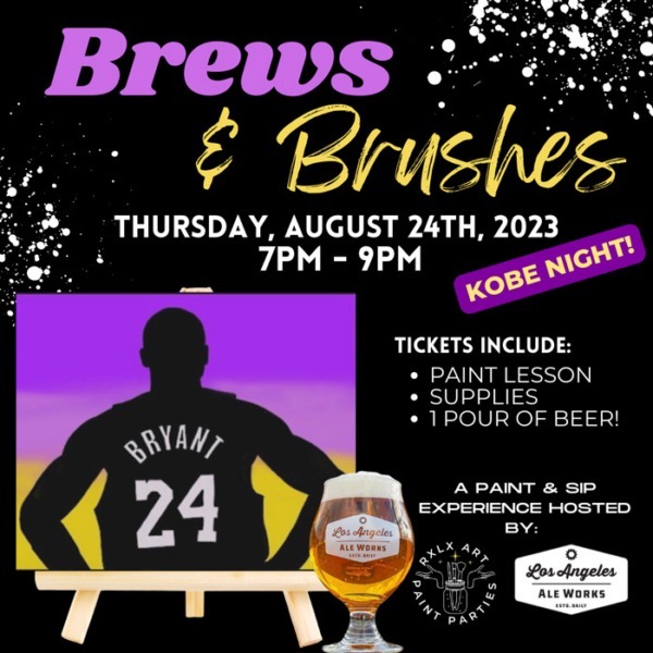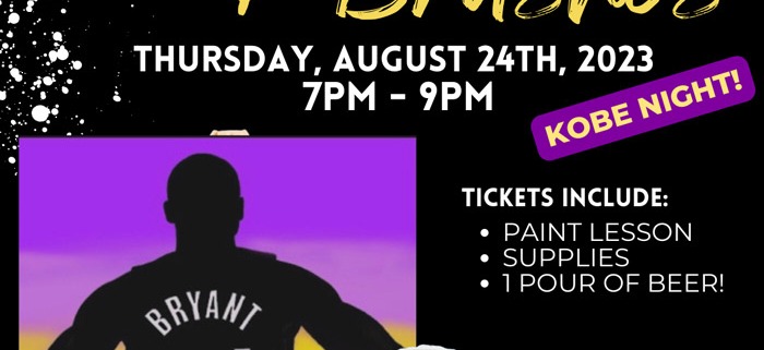 Join us for an evening of painting & sipping in honor of Kobe Bryant on Thursday 8/24 from 7 – 9:00pm!