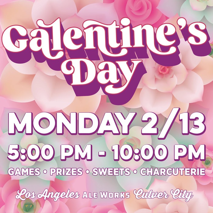 Galentine’s Day Flight Board featuring Corazon, Pom Wheat beer, Wandering Abroad Blood Orange, and Meet Me at Ivy Station Juicy IPA.