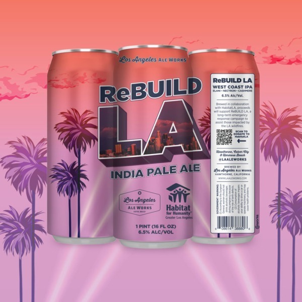 This is more than a beer — it’s community effort to uplift those impacted by the fires. Proceeds will go to HabitatLA’s ReBUILD LA campaign to assist with their long-term emergency response. We’ll also be hosting LA Ale Works volunteer days with HabitatLA to rebuild together, and will be inviting you to work alongside our team to help make a difference.