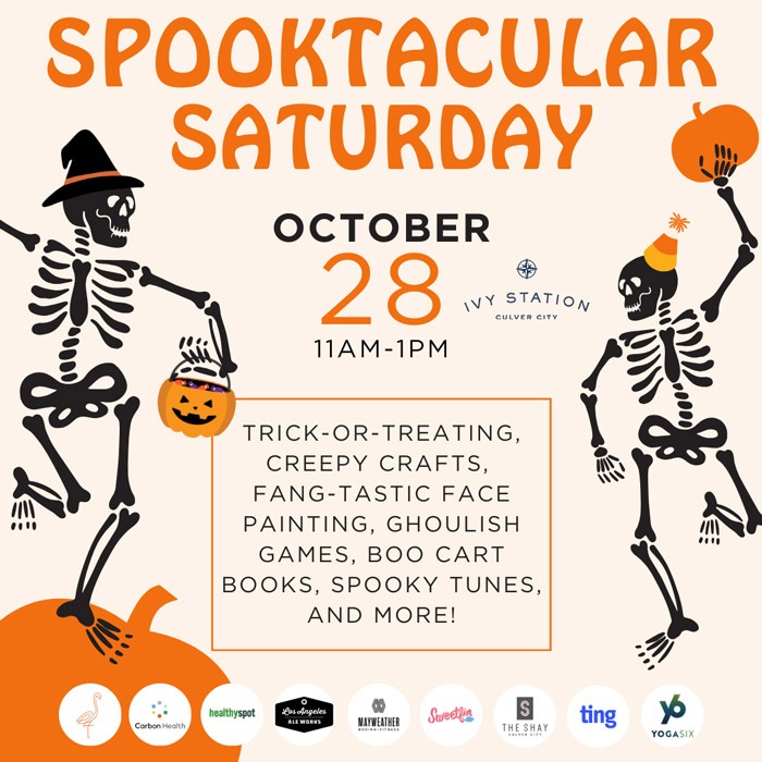 It’s a spooktacular Saturday at Ivy Station Culver City! Bring the littles for a frightfully fun day of trick or treating, creepy crafts, fang-tastic face painting, ghoulish games, spooky tunes, and more. Costumes are encouraged!