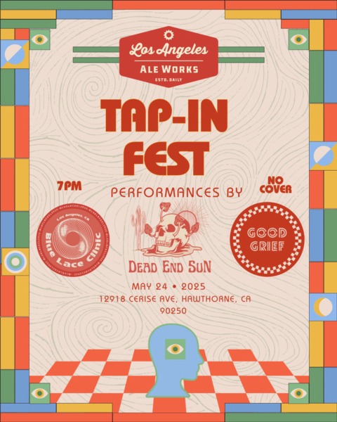 We’re turning up the volume for Memorial Day Weekend! Join us for Tap-In Music Fest, a night of high-energy alt rock and good vibes featuring live sets from Dead End Sun, Blue Lace Clinic, and Good Grief. Music kicks off at 7pm and keeps rolling ’til 11—come early, stay late, and tap into the sound.