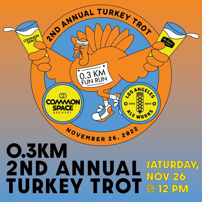 Run, walk, skip or jump – join us for our 0.3km 2nd Annual Turkey Trot from Common Space to LA Ale Works! First, second and third place winners of the race will be awarded prizes.