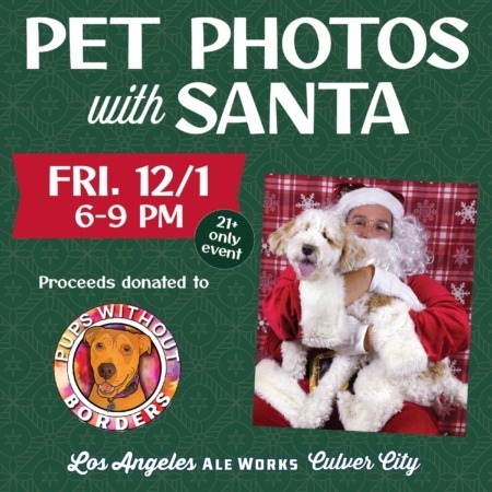 Bring your furry friends to LA Ale Works in Culver City for a professional holiday photo of your pet with Santa!